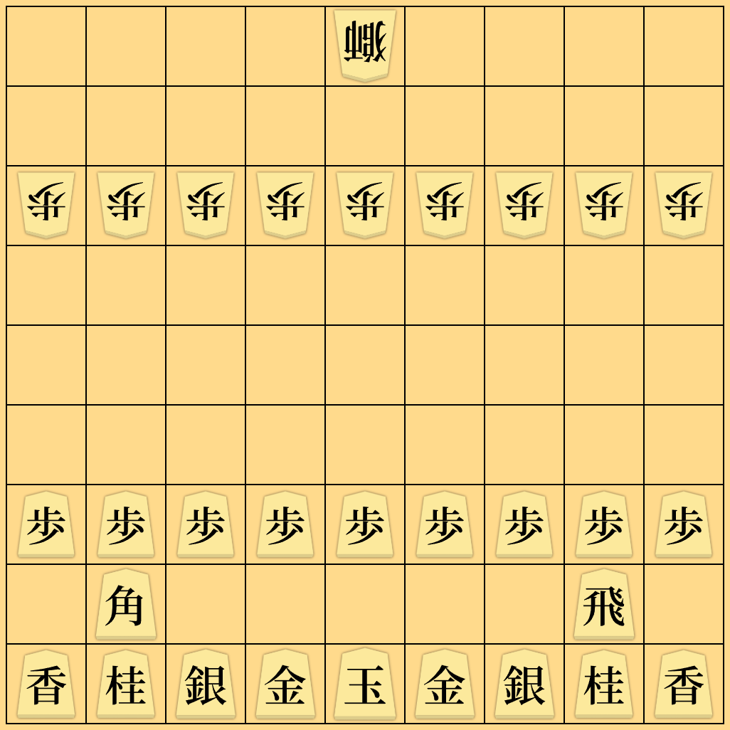 - 駒落ち戦なので、獅子王を持っている側が上手になります。最初の手番も獅子王を持っている側になります。